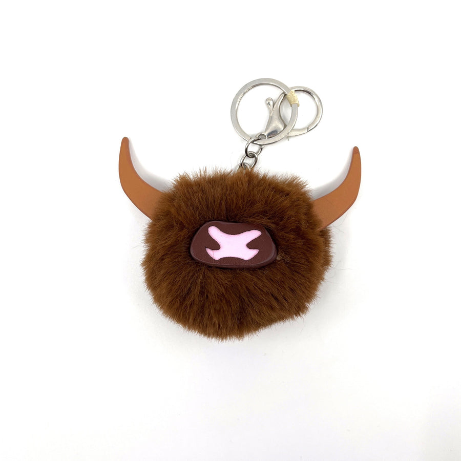 The Highland Cow design, coupled with a fluffy pom pom, exudes a whimsical appeal. Attach it to your keys or bag to add a touch of Scottish charm to your everyday life.